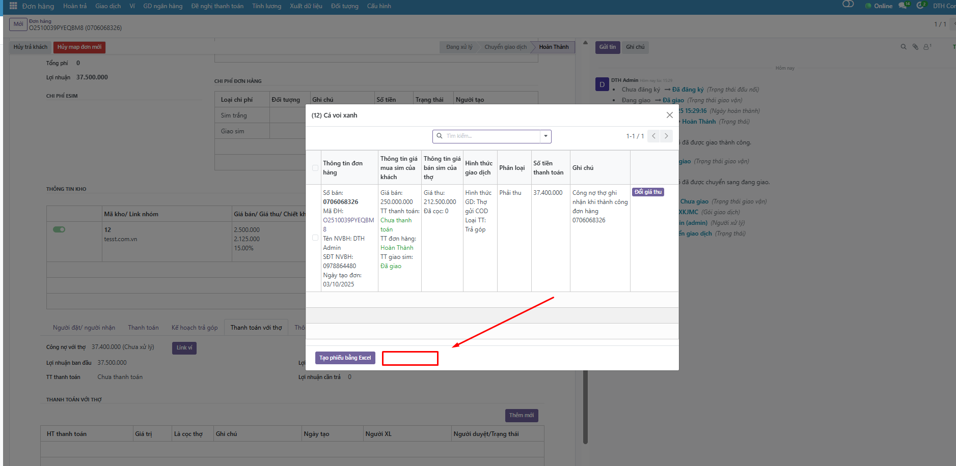 closed[Đơn hàng] Thêm 1 nút tạo phiếu trong popup công nợ thợ