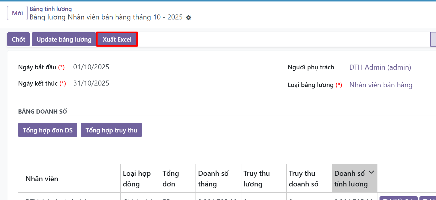 - Mong muốn: Trong file xuất excel chi tiết bảng lương, thêm cột Số lượng đơn
