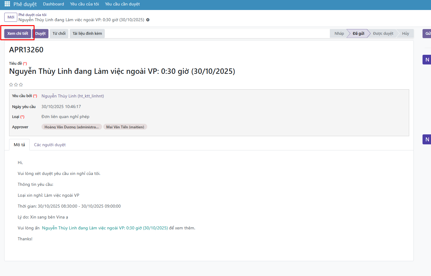 closedPhê duyệt - Xem chi tiết ra yêu cầu duyệt khác