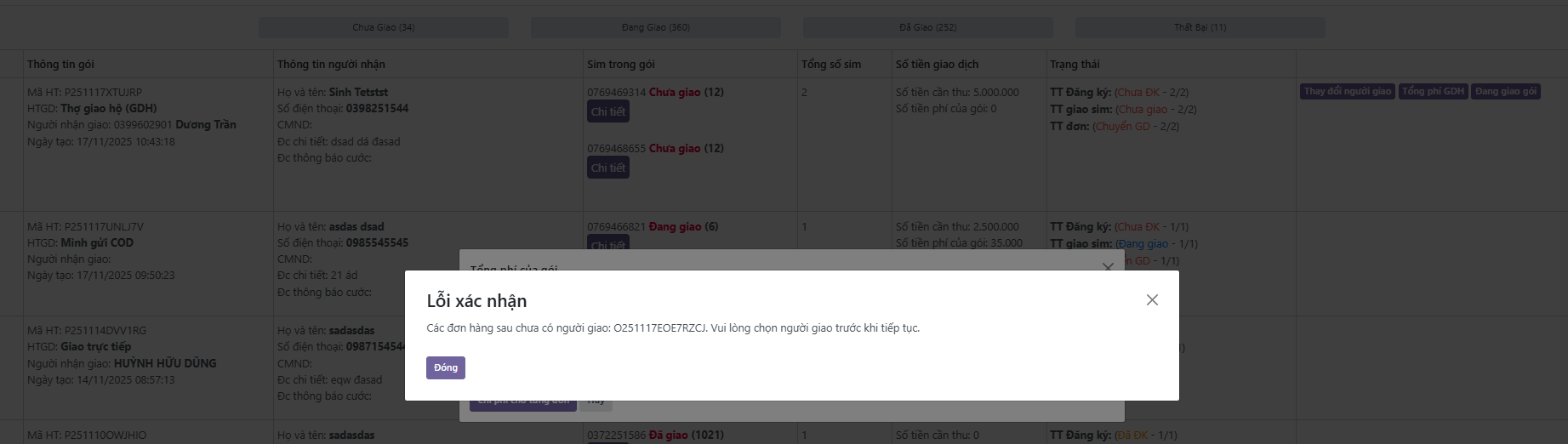 closedDanh sách gói hàng - Lỗi nhập tổng phí GDH báo là ko có người giao cho dù đã có người giao